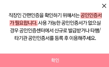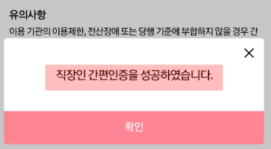 특이사항이 없다면 "직장인 간편인증을 성공하였습니다."라는 메세지가 뜰 것입니다.