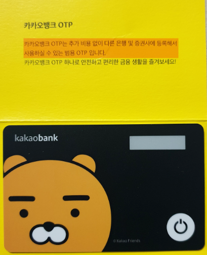 카카오뱅크 실물 카드형 OTP의 모습