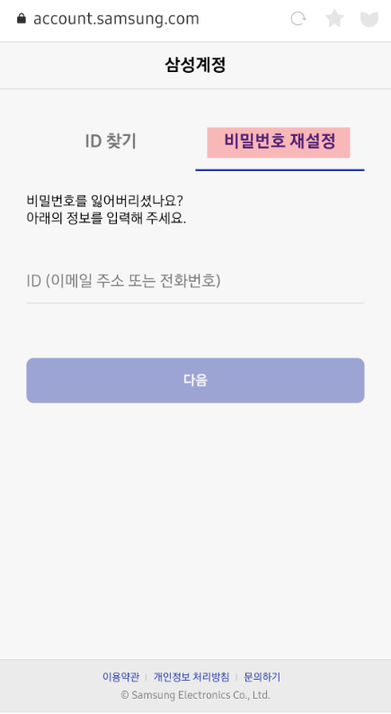 # 삼성 아이디 비밀번호 찾기