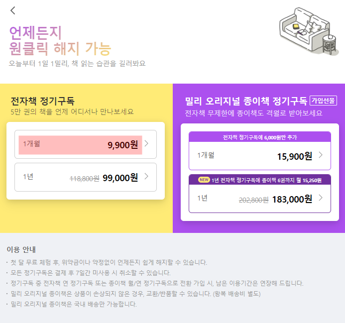 밀리의 서재 정기 구독이 끝나는 날 이전에 자동 결제를 해지했어야 했는데