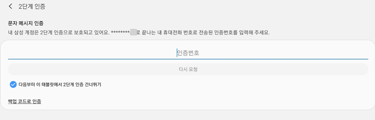 삼성 계정으로 로그인할 때 휴대폰 인증, 인증 앱 사용으로 2단계 인증을 할 수 없을 경우