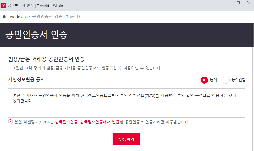 저는 공인인증서 인증으로 진행하도록 하겠습니다.