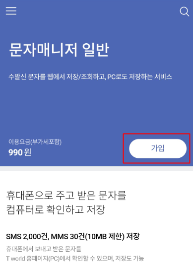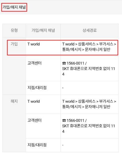 문자 매니저 가입은 티월드(T world) 혹은 고객센터를 통해 쉽게 가입할 수 있다.