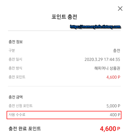 이 수수료는 충전액이 소액일 경우엔 크게 체감되지 않지만