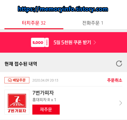 참고로 배달의 민족은 음식점이 주문을 접수하기 전까지 주문 취소할 수 있다.