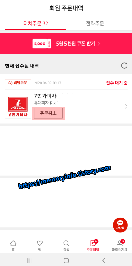 요기요 주문취소 방법