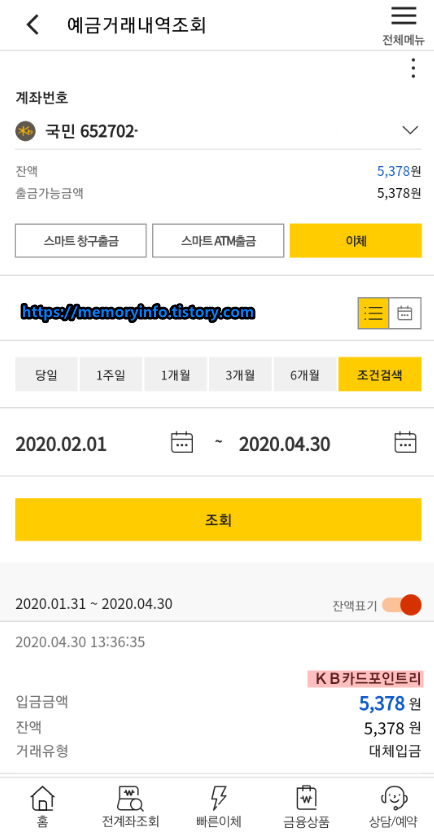 그럼 이제 입금이 제대로 되었는지 보기 위해