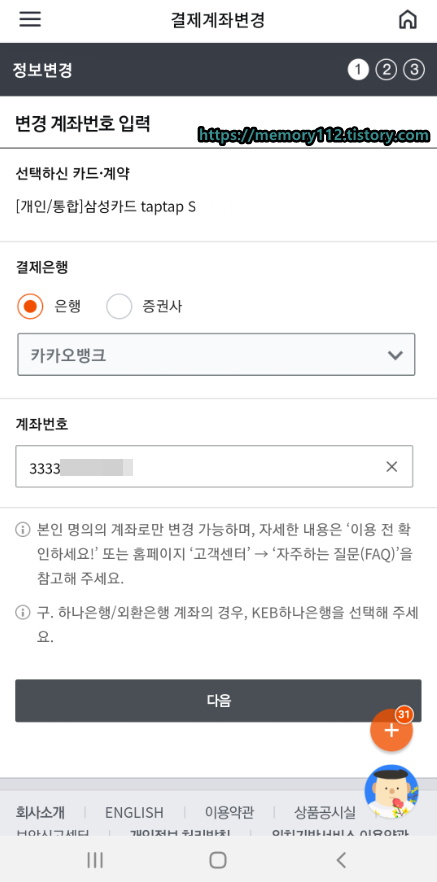 삼성카드 결제 계좌 변경 방법