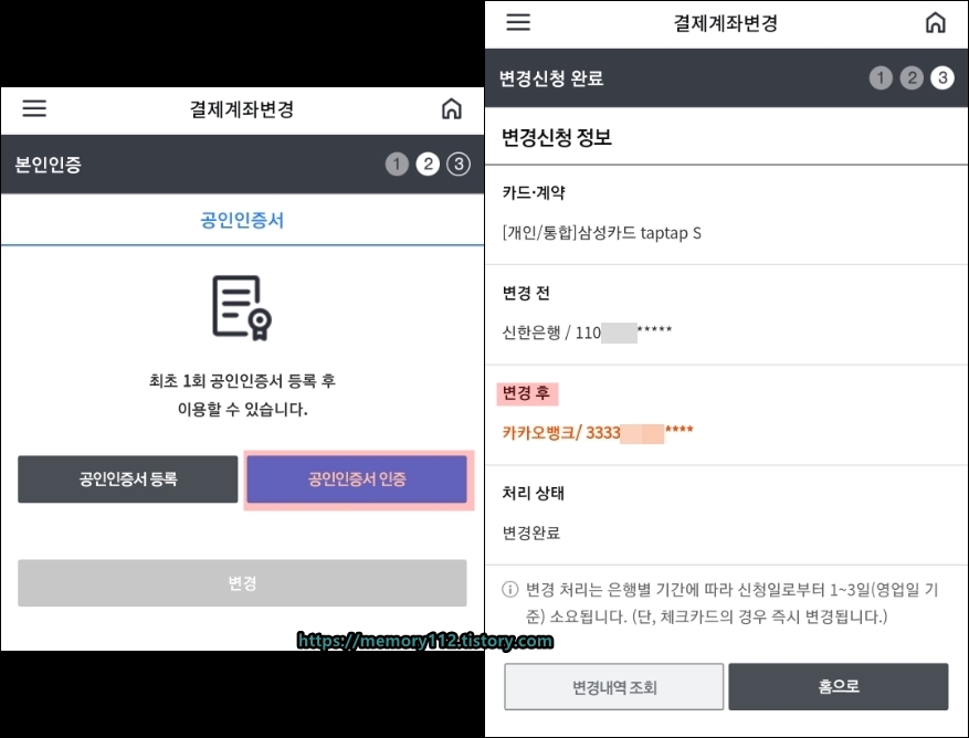 그리고 결제 계좌 변경 시 공인인증서는 필수이다.