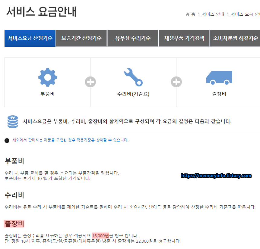 출장비는 홈페이지에서 봤던대로 18,000원이었고,