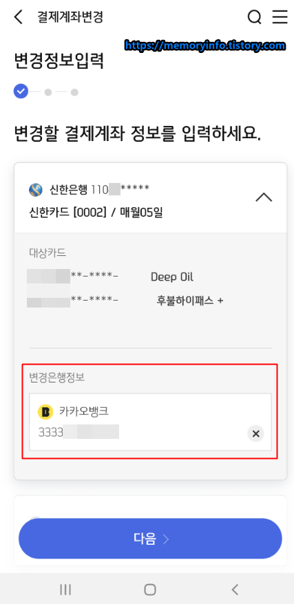 이어서 내정보관리에 있는 '결제계좌변경'을 눌러줍니다.
