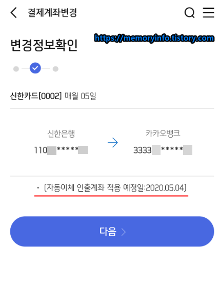 위와 같이 해당 계좌가 자동 이체 계좌로 등록됐다고