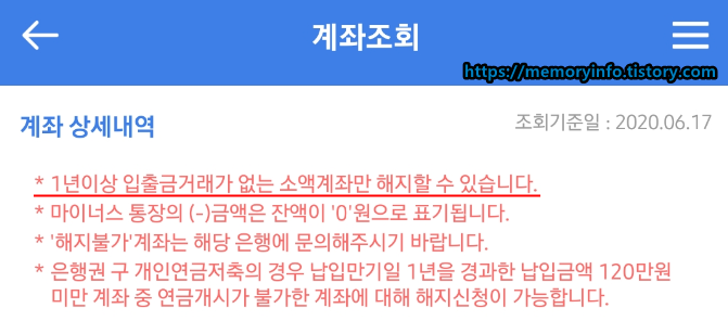 그 조건은 1년 이상 입출금 거래 및 내역이 없는