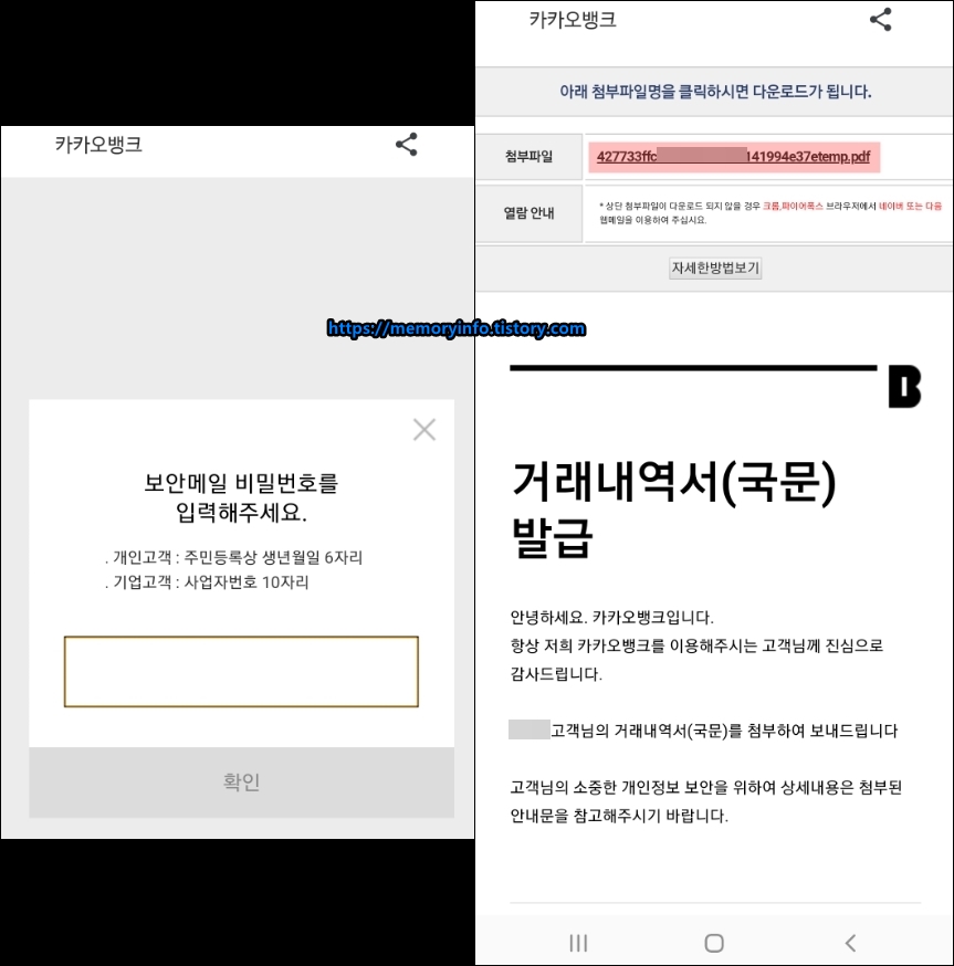 카카오뱅크 거래내역 다운로드