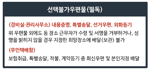 경비실, 관리사무소 : 내용 증명, 특별 송달, 선거 우편, 외화 등기, 경비실 또는 관리사무소 수령 거부 등