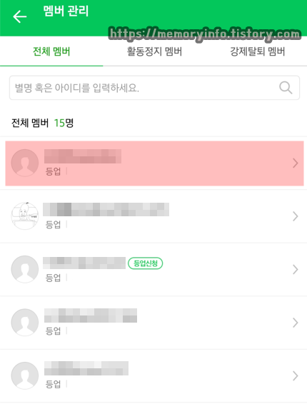 강퇴할 멤버를 눌러줍니다.