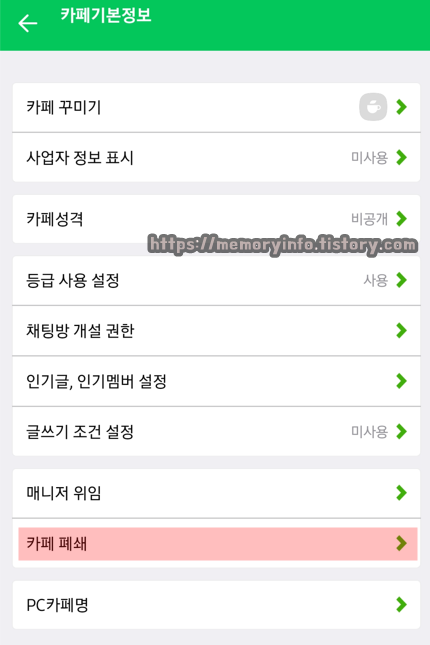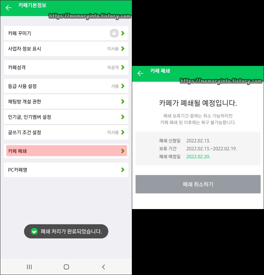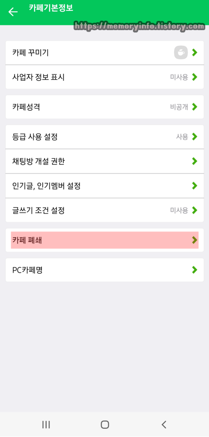 네이버카페 폐쇄방법 (모바일)