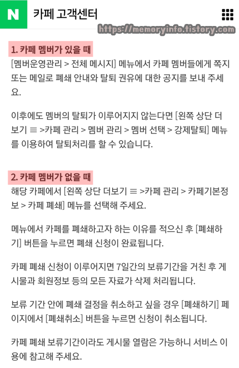 네이버카페 폐쇄 신청 방법