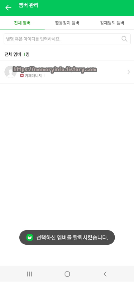 제가 폐쇄할 카페에는 멤버가 15명이나 있기 때문에 이 사람들을 모두 강제 탈퇴 처리해주어야지만 폐쇄 신청이 가능합니다.