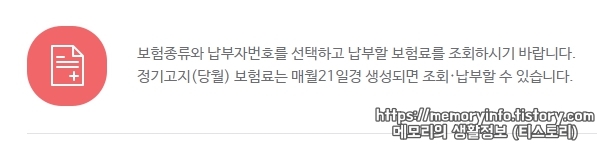 건강보험료 납부는 '건강보험료 납부 통지서 수령 유무와 상관없이' 인터넷 홈페에지를 통해서도 가능하며, 당월 보험료는 매월 21일 쯤이 되면 고지서가 생성되어 납부할 수 있다.