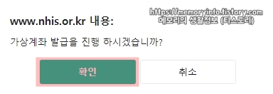위와 같이 "가상계좌 발급을 진행 하시겠습니까?"라는 창이 뜨면 '확인'을 눌러줍니다.
