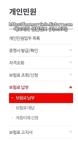 이어서 좌측에 보이는 '보험료 납부'를 눌러줍니다.