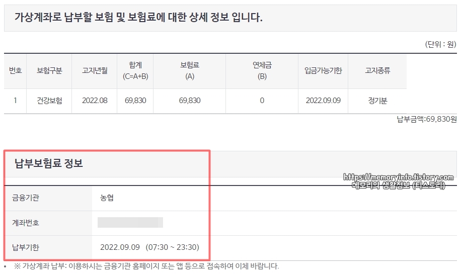 ※ 보험료를 가상계좌로 납부할 경우 납부기한은 신청 당일 23시 30분까지입니다.