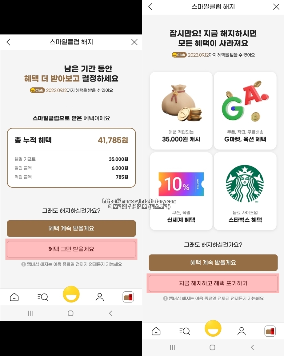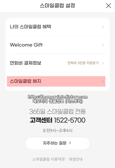 스마일클럽 혜택 및 해지 안내