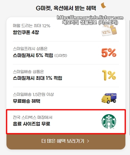스마일클럽 스타벅스 음료 사이즈업 혜택은 지마켓 앱 또는 옥션 앱을 통해 이용 가능하다.