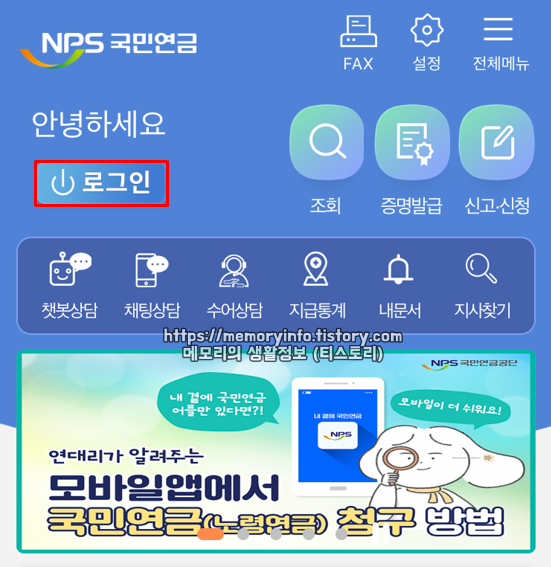 참고로 국민연금 모바일 앱 로그인은 공동 인증서, 금융인증서, 네이버 인증, 카카오페이 인증, 간편 인증이 가능합니다.