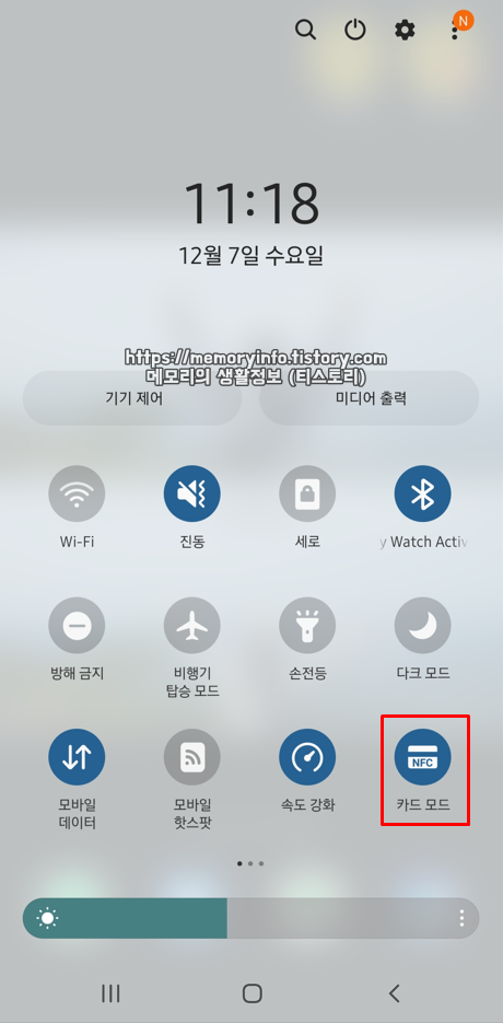 1. 스마트폰의 카드 모드를 켠다. (삼성페이 앱은 따로 켤 필요 없음)