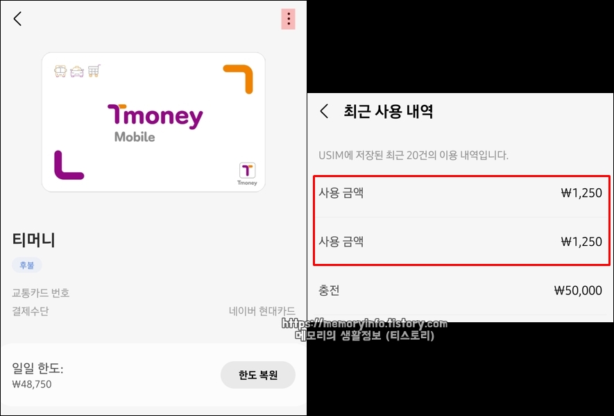 모바일 티머니 사용 내역 조회방법