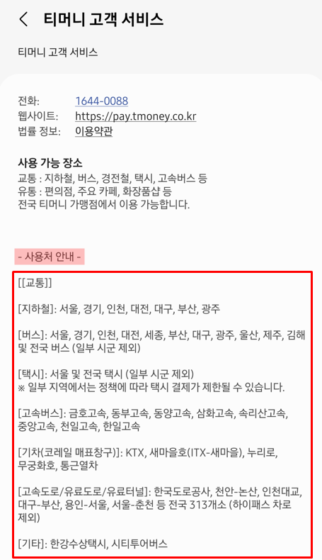 <티머니 사용처 1>