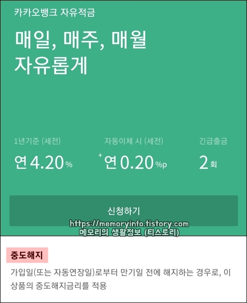 카카오뱅크 적금 해지 안내 (중도해지 금리)