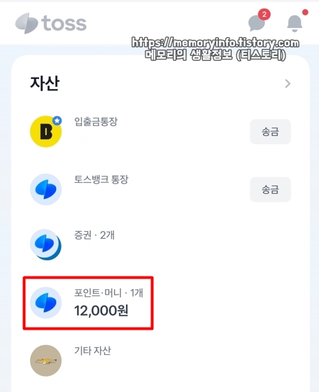 자산에 보이는 '포인트 및 머니'를 눌러줍니다.