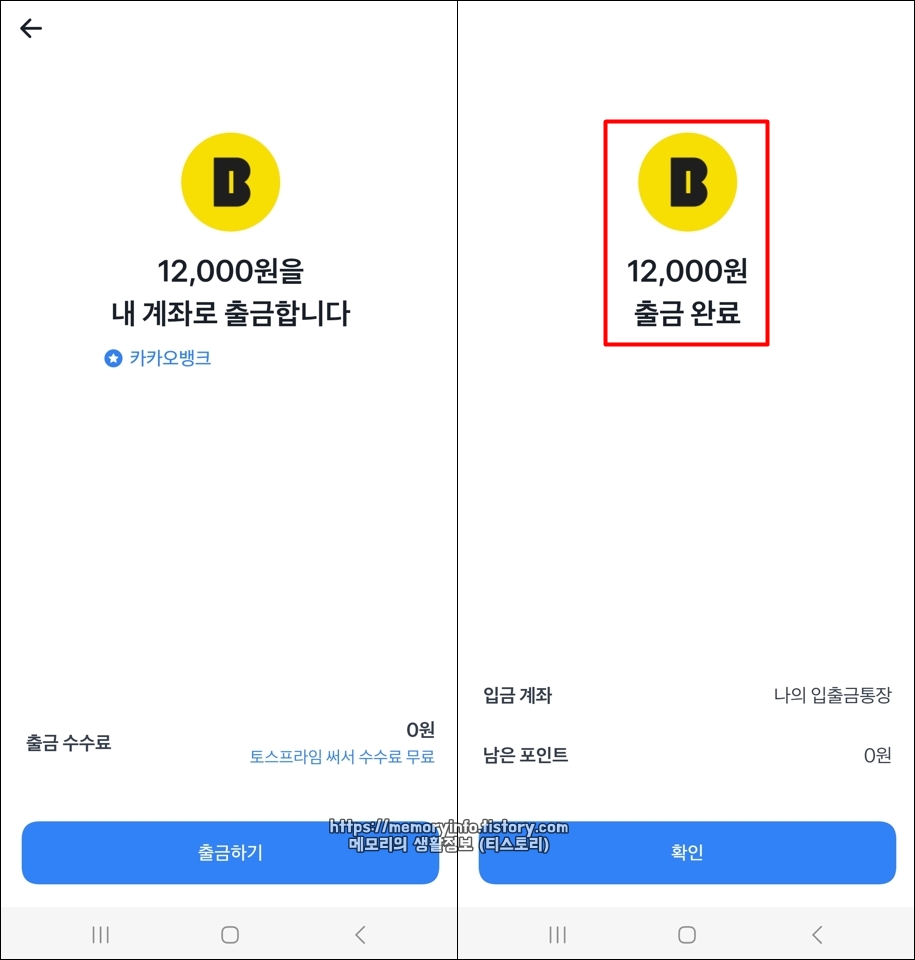 토스 포인트 출금 처리는 신청 즉시 바로 됩니다. 통장 입금 내역을 확인해보니 입금자명은 "토스 포인트"네요.