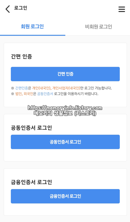 스마트위택스 로그인은 간편인증(카카오톡 등), 공동인증서(구 공인인증서), 금융인증서를 통해 가능합니다