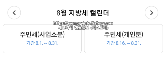 주민세는 국세청이 아닌 지방자치단체에 납부하는 지방세로, 매년 8월에 납부하게 되는 세금입니다. (8월 16일부터 8월 31일까지)